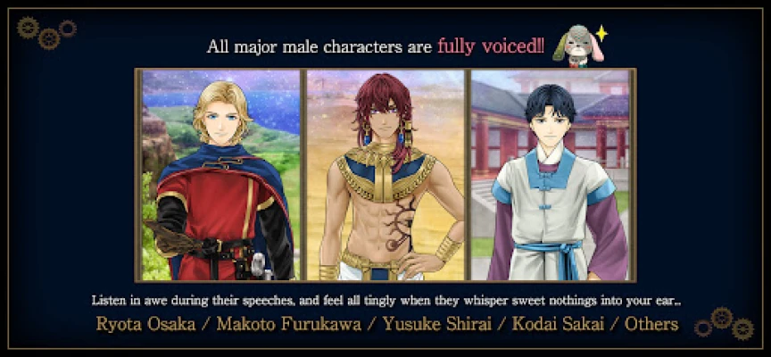The Pharaoh of Ancient Egypt, Medieval European knight, an astronomer of Joseon... The men you encounter will be from different eras and social classes, and they all have unique personalities.
