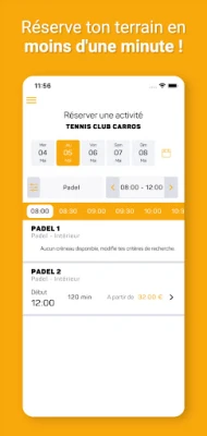 Fini la corvée de réservation ! Avec l'application tu n'as plus qu'à accéder aux créneaux disponibles et à en choisir un. Le club recevra alors automatiquement ta réservation.