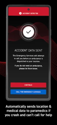 - Automatically delivers your contact, location, bike and medical data directly to the emergency services if you are unable to call for help.