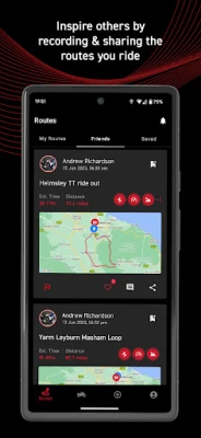 - Share the routes you record with friends via social media platforms.