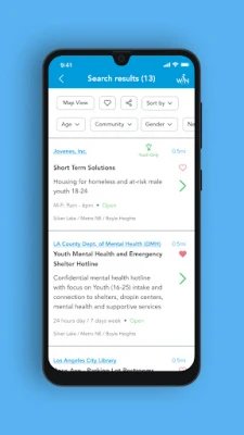 ✔ View human services near you – they are listed first if your location is on.